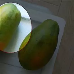 树势强壮,果实条椭圆形,果咀有明显指状物突出。单果重350-800克,可食部分占73%,果肉橙黄色,质地细嫩,纤维少,鲜食品质优良。该品种后期果实易感炭疽病。