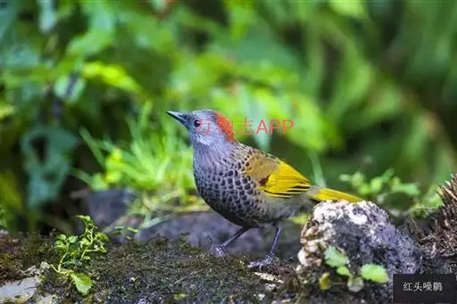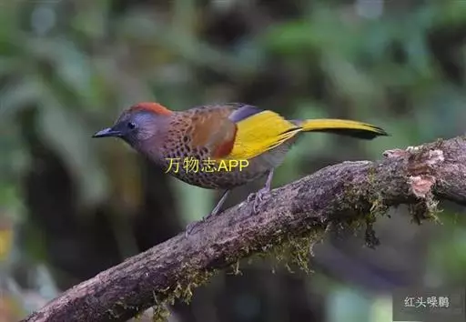 红头噪鹛(学名:Garrulax erythrocephalus)中型鸟类,体长22~28厘米。头顶棕红色,眼先、脸、颏、喉黑色,上体橄榄色或棕橄榄褐色,外侧飞羽金黄色,尾羽基部亦为金黄色,下体多为暗橄榄褐色。