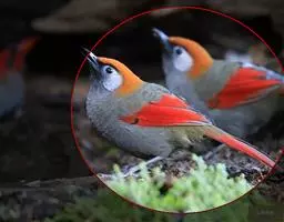该种和赤尾噪鹛较为相似,但赤尾噪眉飞羽和尾羽为鲜红色,可明显与之区别。