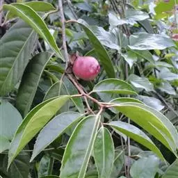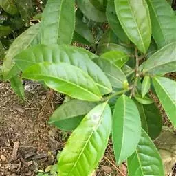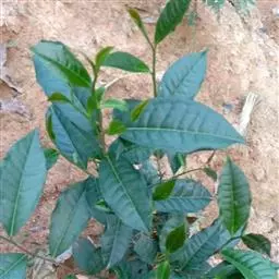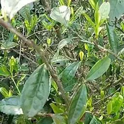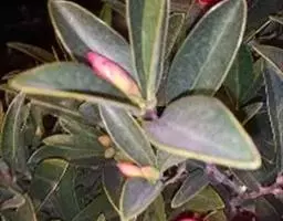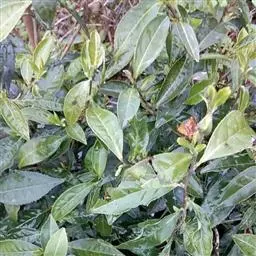 常绿灌木,高3米;嫩枝紫红色,无毛。嫩叶淡紫红色,老叶椭圆形或长椭圆形,先端急短尖,基部宽楔形或楔形。花为淡黄色,成顶生或腋生,花径 1.5-2厘米;花朵有花