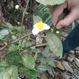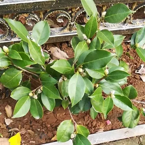 扦插繁殖:金花茶扦插繁殖适期为4月至5月上旬,也可在9月中、下旬进行。插穗选取树冠外部组织充实、叶片完整、叶芽饱满和无病虫害的当年半熟枝。穗长一般为15厘米,先端留2个叶片,基部带踵。用 IBA 300ppm处理枝条5小时后,按株行距10~14厘米×3~4厘米规格扦插于苗床上,插穗入土深度为3厘米左右。茶苗扦插成活的关键是育苗前期保持足够的湿度,切忌阳光直射,并控制气温在25℃左右。勤喷水,使幼苗经常覆盖一层薄薄的水膜。1个月后,待新根长出后,逐步增加阳光,加速茶苗木质化。