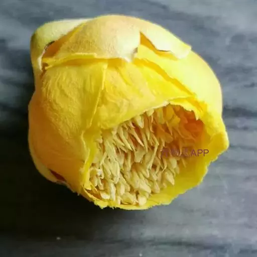 蒴果扁三角球形,长3.5厘米,宽4.5厘米,3爿裂开,果爿厚4~7毫米,中轴3~4角形,先端3~4裂;果柄长1厘米,有宿存苞片及萼片;种子6~8粒,长约2厘米。花期11~12月。 金花茶