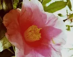 富绿灌木至小乔木,高4-5米;嫩枝无毛。嫩叶蓝灰色,无毛,老叶薄,椭圆形,先端尾状渐尖,基部近圆或宽楔形。花为淡黄色,单生或2-3朵聚生,成腋生或顶生,花径3.5-6.5厘米;花朵有花瓣11-15片,花瓣基部具有紫红色或玫瑰色斑块,外面深内面浅,很有观赏;子房近球形,无毛;花柱3 -4条,完全分离,无毛。花期9-12月。蒴果扁球形,无毛。主要分布于广西宁明县;生于海拔230-350米的石灰岩山钙质土 上的杂木林中。本物种可作杂交育种的良好亲本,可培育出黄色重瓣的茶花新品种。