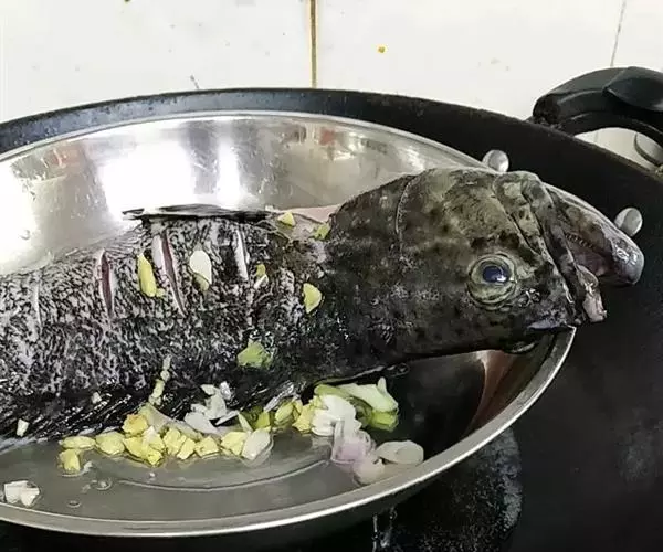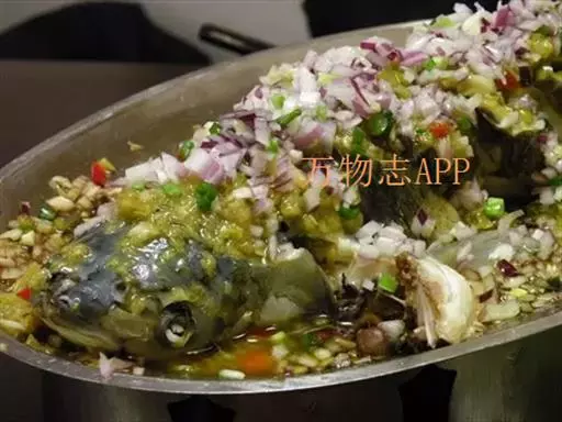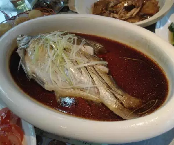 清蒸过江鱼是一道美食,由活鲤鱼、葱等原料做成。