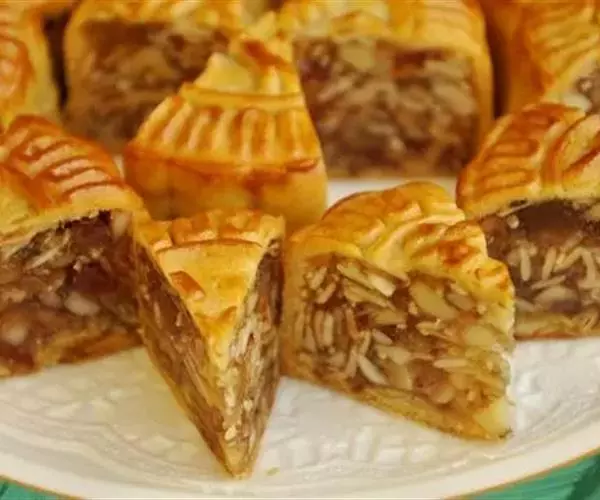 榴莲酥是用榴莲果肉和面粉烤制的一种甜点。金黄诱人的榴莲酥以新鲜榴莲果肉配制的软滑馅心,配以层次分明、异常松化、做工精细的酥皮,令人食指大动。吃完后淡淡的榴莲味让人“榴莲”忘返。