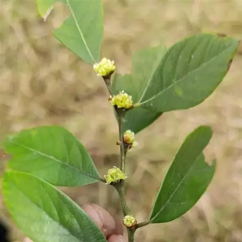 果广椭圆形,长0.8厘米,直径0.5-0.6厘米,成熟时红色,后变紫黑色,干时黑褐色。花期3-4月,果期8-9月。