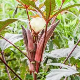 咖啡黄葵 Moench)亦称黄秋葵,是锦葵科一年生草本植物。茎圆柱形,疏生散刺。叶掌状,裂片阔至狭,…