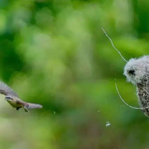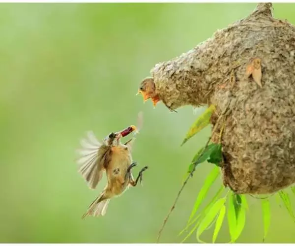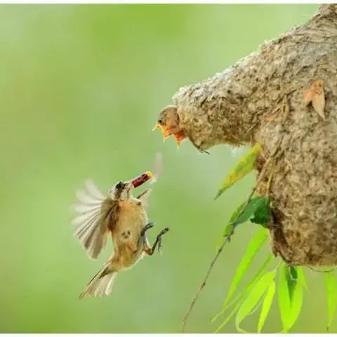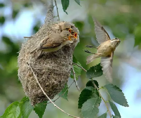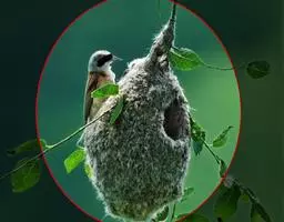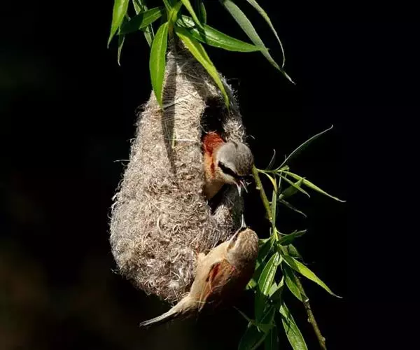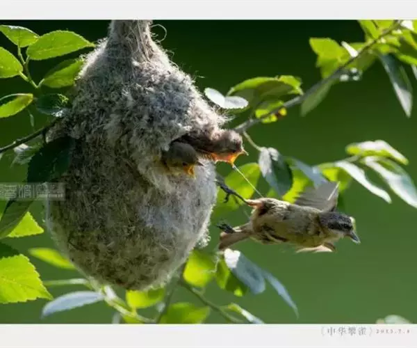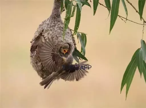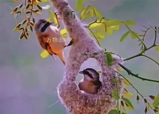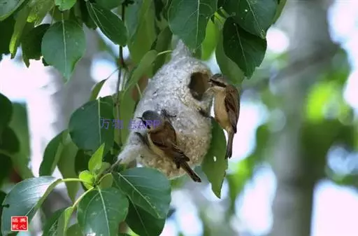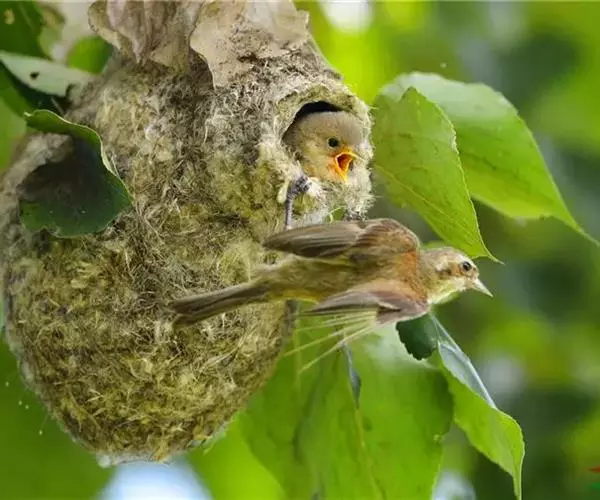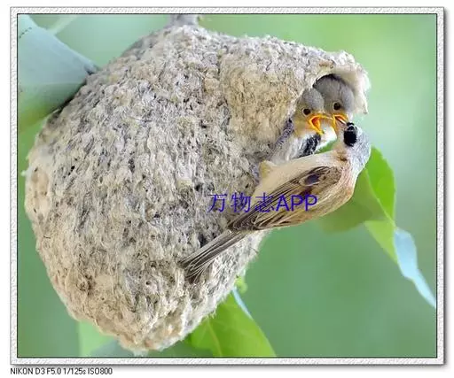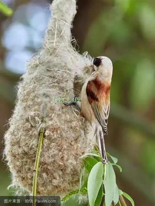 巢呈囊袋状,主要由树皮纤维、羊毛、蒲绒、杨絮、柳絮等编织而成,结构相当精巧,悬吊于乔木柔软的细枝末梢,很像一个悬挂的葫芦。巢顶端侧面月一管状开口,供亲鸟出入。营巢基本完成,但以后仍不断在内壁用杨絮和柳絮加厚,直到产卵期间亦不停止。每个巢从开始营造到最后完成需要8-12天。巢的大小为长12-16.5厘米,宽8.4-10.5厘米,深8.5-10厘米,外径3-4.5厘米,巢口内径2-3.8厘米,巢口管长0.9-4厘米。