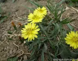 多年生草本,植株具春秋二型之别。春型者根状茎短,根颈多少为枯残的叶柄所围裹;根簇生,粗而略带肉质。叶基生,莲座状,于花期全部发育,叶片形状多变异,通常为倒披针形或倒卵状长圆形,长2-6厘米,宽1-3厘米,顶端钝圆,常具短尖头,基部渐狭、钝、截平或有时为浅心形,边缘具齿、深波状或琴状羽裂,裂片疏离,凹缺圆,顶裂大,卵形,具齿,上面被蛛丝状毛或脱落近无毛,下面密被蛛丝状绵毛;侧脉4-6对,纤细,顶裂基部常有1对下部分枝的侧脉;叶柄长2-4厘米或有时更长,被白色绵毛;花葶单生或数个丛生,直立或弯垂,纤细,棒状,长5-20厘米,被蛛丝状毛,毛愈向顶端愈密;苞叶疏生,线形或线状钻形,长6-7毫米,通常被毛。