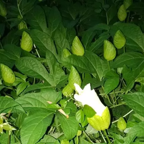 雌雄异株。茎直立或匍匐,茎上长有攀附用的卷须,高50厘米,基部分枝,枝条不太肉质,细而圆。叶互生,肉质,被白霜的绿色,椭圆形,长4厘米、宽3.5厘米,具0.8厘米的叶柄,叶正面中间稍凹,无毛。花极淡的黄绿色。