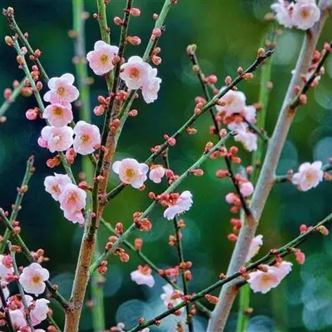 杏花有变色的特点,含苞待放时,朵朵艳红,随着花瓣的伸展,色彩由浓渐渐转淡,到谢落时就成雪白一片。“道白非真白,言红不若红,请君红白外,别眼看天工。”这是宋代诗人杨万里的咏杏五绝,他对杏花的观察十分细致。