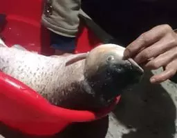 全裸裸重唇鱼,Gymnodiptychus integrigymnatus ,鲤科裸重唇鱼属的一种…