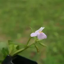 花单生于叶腋,花梗长6-10毫米,在果中达2厘米,无毛,萼长约5毫米,仅基部联合,齿5,狭披针形,无毛;花冠白色或淡紫色,长8-12毫米,上唇直立,卵形,2浅裂,下唇开展,3裂,裂片近相等,比上唇稍长;雄蕊4,全育,前面2枚的花丝在颈部有短棒状附属物;柱头2裂。
