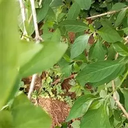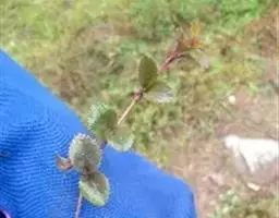 叶仅下部者有短柄;叶片三角状卵形、卵形或矩圆形,长4-20毫米,宽7-12毫米,顶端圆钝或急尖,基部截形或近心形,边缘有不明显的浅圆齿,侧脉3-4对,约以45度角伸展,上下两面均无毛。