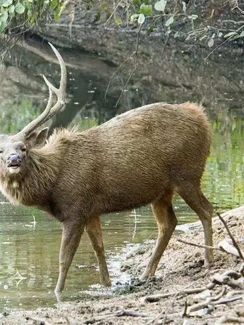 坡鹿是偶蹄目鹿科鹿属动物,体长1.6米左右,体重60~100千克。体形狭长,颈部和四肢也较为细长,…