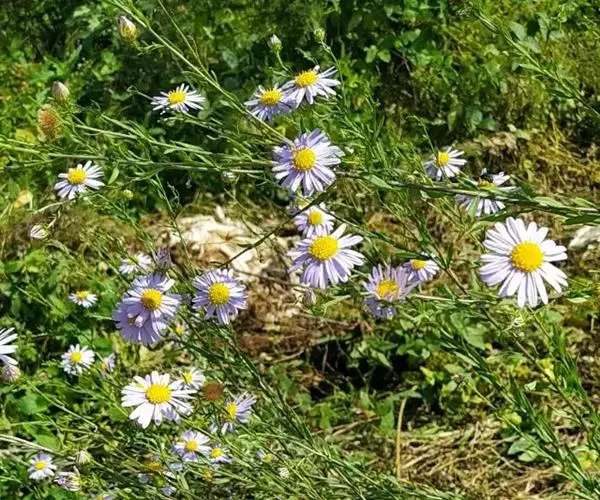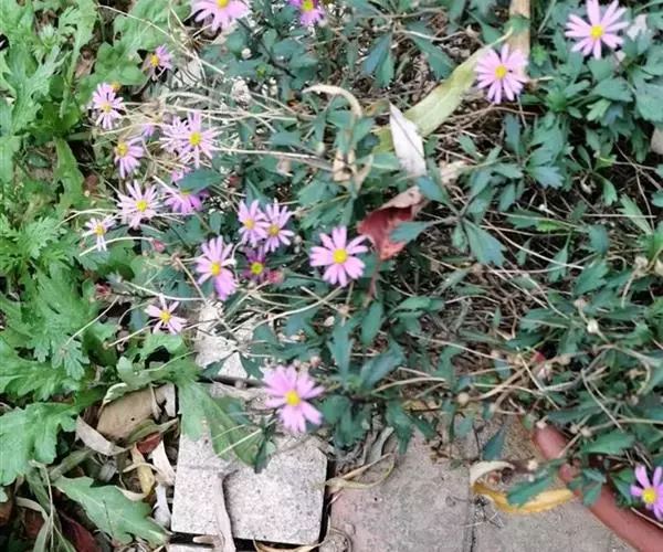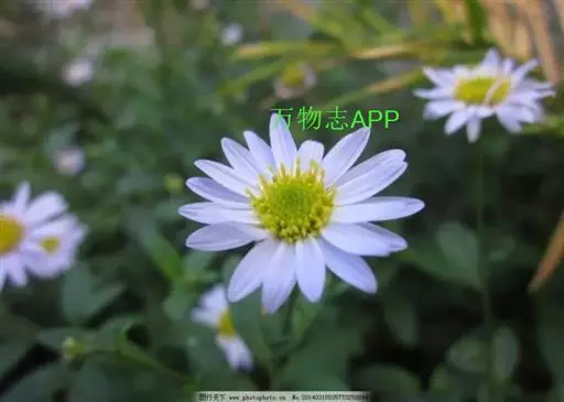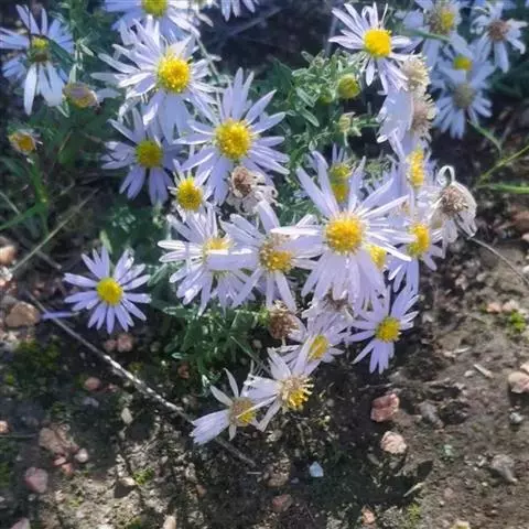头状花序单生于枝端并排列成疏伞房状。总苞半球形,径6-9毫米,长4-5毫米;总苞片2-3层,覆瓦状排列;外层倒披针形,长2毫米,内层倒披针状矩圆形,长达4毫米,顶端钝或稍尖,上部草质,有疏短毛,边缘膜质,有缘毛。花托圆锥形。舌状花1层,15-20个,管部长1.5-1.7毫米;舌片浅紫色,长达10毫米,宽1.5-2毫米;管状花长3.5毫米,管部长1.5毫米,被短密毛。瘦果倒卵状矩圆形,极扁,长1.5-2毫米,宽1毫米,褐色,边缘浅色而有厚肋,上部被腺及短柔毛。冠毛长0.1-0.8毫米,弱而易脱落,不等长。花期5-9月,果期8-10月。