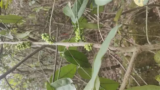 小叶狭长的带状披针形,长10-20厘米,宽1-2厘米,两端尖,叶缘浅波浪状,侧脉疏离。花期11-12月。