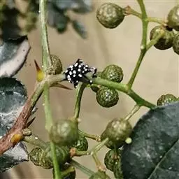 花椒蚧壳虫在渭北每年发生1代。以2龄若虫在芽基、被刺、枝杈处结白色茧越冬。茧:椭圆形,长2-3mm。2月下旬至3月上旬为出茧盛期。初出若虫在嫩芽基部群巢危害,待嫩芽逐渐长大,初叶分生,若虫也随之渐渐分散到芽顶和幼叶背面取食,致叶片、芽顶扭曲,造成落花落果,严重时,造成枝梢干枯,甚至整株枯死。4月下旬雌虫羽化,雌雄多在晴天下午的4-5时进行交配,雄虫有多次交配的习性。雌虫结卵囊产卵于叶背,一头成虫产卵多达300余粒,一般140粒左右。5月上中旬若虫大量孵化,且呈堆状聚集叶背危害。7月上旬第一次脱皮,10月上中旬开始向芽基部、枝杈处迁移,11月上旬结茧越冬。该虫主要靠风力传播。 防治技术 1、化学防治: (1)出茧若虫防治:2月下旬至4月中旬,用1000倍速朴希加2%洗衣粉或600倍多来宝,1200倍威力杀灭进行树体喷雾,均能起到良好的杀虫效果。 (2)卵期可用800-1000倍水胺硫磷或1000倍灭多威加1/2“助剂”(或特效王)叶面喷雾。 (3)若虫期即6月下旬至10月中下旬,选600倍蚧死净加1000倍高氯菊酯加1/2“助剂”或用1000倍吡虫啉加800倍敌敌畏加1/2“助剂”防治。 (4)越冬期可用80-100倍融杀蚧螨(生物农药)或3-5度石硫合剂进行树体喷洒,消灭若虫。 (5)水源缺乏或交通不便的地块,可在若虫出茧期,将毒死蜱、金毛肥、助剂、水配成1:1:0.5:5的混合液进行树干涂环,环宽3-5cm,能起到提早控制若虫和花椒蚜虫危害。 2农业措施: (1)春季虫口密度过大时,可人工敲打虫害枝致虫落地,随之结合春耕耙耱,消灭落地雌若虫。 (2)卵期可人工摘除埝碎卵囊,能杀死大量卵和若虫,有效降低虫口。 注意问题: (1)花椒蚧壳虫虫体微小,借风传播,因此应注意防前虫情调查,细致检查,加强联防、协防,坚持防治到位,坚持群防群治。 (2)该虫危害部位隐蔽,故在喷药时,必须细致周到。 (3)多使用无公害、低残留农药,严禁或限制使用高毒、高残留农药,严格按农药使用浓度操作,花椒采收前20天停止用药。