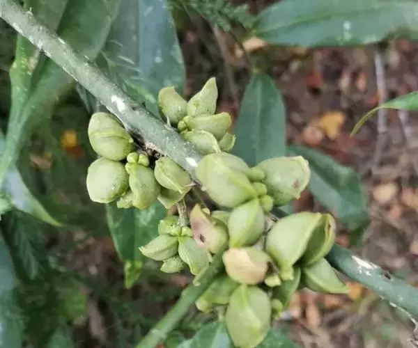 单数羽状复叶;小叶3-9,对生,坚纸质至革质,狭矩圆形至卵状矩圆形,长7-16厘米,宽3-6厘米,两侧略不等,边全缘或微波状,无毛,有时背面中脉上着生有下弯的钩状刺。聚伞状圆锥花序,腋生,较叶短,花4数;萼片宽卵形,长约1毫米,边缘被短睫毛;花瓣卵状矩圆形,长4-5毫米;雄花的雄蕊开花时伸出花瓣外,退化心皮小,顶端2-4叉裂;雌花无退化雄蕊。蓇葖果成熟时淡褐色,外形似规,种子黑色,光亮。