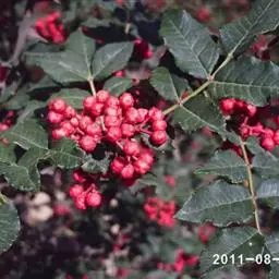 本种的特征是:分果瓣较大,内、外果皮不等大;果序上的果密集砚壳花椒 成团;嫩枝有较大、近于海绵质的髓部;小叶的叶缘呈棕红色。