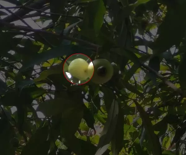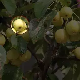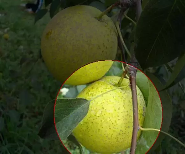 沙果梨:果实很小,重22-43克(纵径3-4.5厘米,横径3.5-4.7厘米),多为扁圆形;果皮黄色,细而薄,基部被有淡红色晕;果点棕色;果梗短,长1.5-2厘米;梗洼甚浅小,有小形沟纹2-3条;萼片宿存;萼洼浅广;果肉白色,后熟后肉质柔软,汁多,昧酸甜微涩,有浓香,石细胞较多。