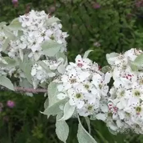 秋子梨(学名:Pyrus ussuriensis Maxim.)是蔷薇科梨属植物,乔木,高可达15米,冬芽肥大,卵形,先端钝,鳞片边缘微具毛或近于无毛。叶片卵形至宽卵形,先端短渐尖,基部圆形或近心形。叶柄嫩时有绒毛,托叶线状披针形,先端渐尖,边缘具有腺齿。花序密集,花5-7朵,总花梗和花梗在幼嫩时被绒毛,苞片膜质,线状披针形,萼筒外面无毛或微具绒毛;萼片三角披针形,先端渐尖,边缘有腺齿,花瓣倒卵形或广卵形,白色;短于花瓣,花药紫色;花柱离生,果实近球形,黄色,萼片宿存,具短果梗,5月开花,8-10月结果。