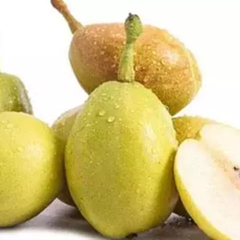 香水梨:香水型属蔷薇科梨属秋子梨系统中的一个品种。栽培历史悠久。果实在白露时采收,刚下树时,味酸质硬,不堪食用,贮藏至严冬,其肉质变软,石细胞减少,味香甜,对老年性咳嗽、哮喘有疗效。至今在山区尚有一定的栽培面积。
