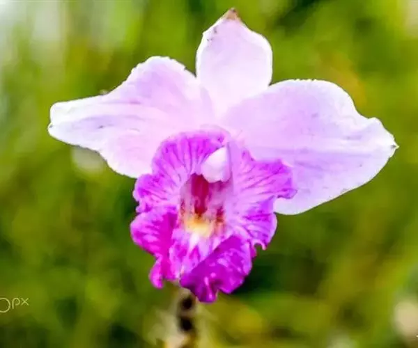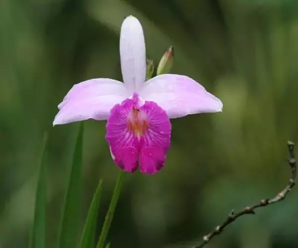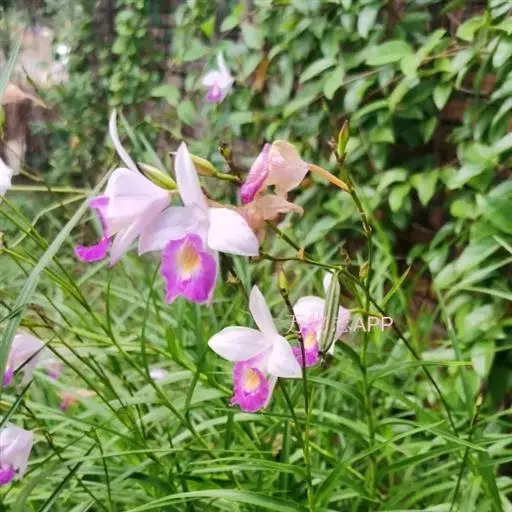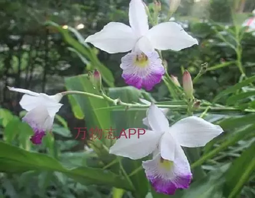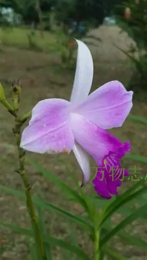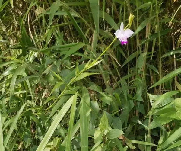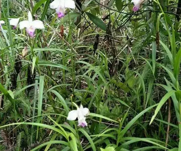 竹叶兰(学名:Arundina graminifolia (D. Don) Hochr.):草本植物。植株高40-80厘米,有时可达1米以上;地下根状茎常在连接茎基部处呈卵球形膨大,貌似假鳞茎,直径1-2厘米,具较多的纤维根。茎直立,常数个丛生或成片生长,圆柱形,细竹秆状,通常为叶鞘所包,具多枚叶。叶线状披针形,薄革质或坚纸质。花序通常长2-8厘米,总状或基部有1-2个分枝而成圆锥状,具2-10朵花;花粉红色或略带紫色或白色;花瓣椭圆形或卵状椭圆形,与萼片近等长。花果期为9-11月或1-4月。