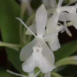 重唇石斛:茎下垂,圆柱形或有时从基部上方逐渐变粗,具少数至多数节。叶薄革质,狭长圆形或长圆状披针形。…