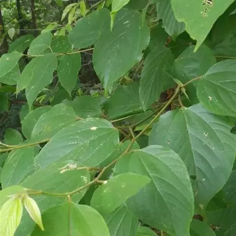叶互生,厚纸质至纸质,宽卵形、椭圆状卵形或心形,长8-17厘米,宽6-12厘米,顶端长渐尖或短渐尖,基部截形或心形,稀近圆形或宽楔形,边缘常具整齐浅而钝的细锯齿,上部或近顶端的叶有不明显的齿,稀近全缘,上面无毛,下面沿脉或脉腋常被短柔毛或无毛;叶柄长2-5厘米,无毛。