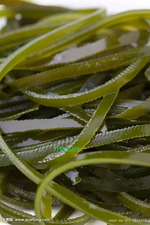 干海带其表面有白色粉末状随着,海带所含的碘和甘露醇尤其是甘露醇呈白色粉末状附在海带表面,没有任何白色粉末的海带质量较差。其次,观察海带以叶宽厚、色浓绿或紫中微黄、无枯黄叶者为上品。另外,海带经加工捆绑后应选择无泥沙杂质,整洁干净无霉变,且手感不粘为佳。