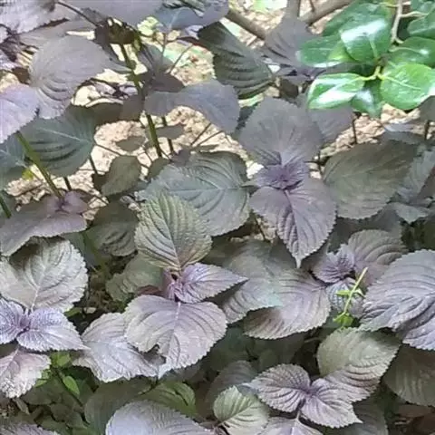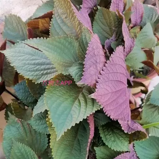 紫苏(学名:Perilla frutescens (L.) Britt. ),别名:桂荏、白苏、赤苏等;为唇形科一年生草本植物。具有特异的芳香,叶片多皱缩卷曲,完整者展平后呈卵圆形,长4至11厘米,宽2.5至9厘米,先端长尖或急尖,基部圆形或宽楔形,边缘具圆锯齿,两面紫色或上面绿色,下表面有多数凹点状腺鳞,叶柄长2至5厘米,紫色或紫绿色,质脆。嫩枝紫绿色,断面中部有髓,气清香,味微辛。
