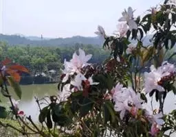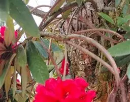 问客杜鹃:灌木,高1-3米。幼枝细长,密被腺体状鳞片。叶革质,椭圆形,卵状披针形或长圆形,上面被鳞…