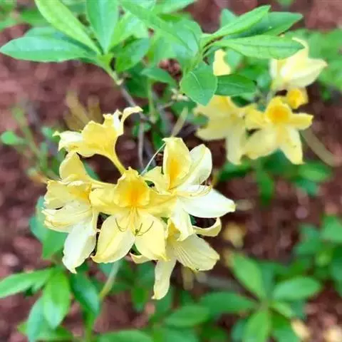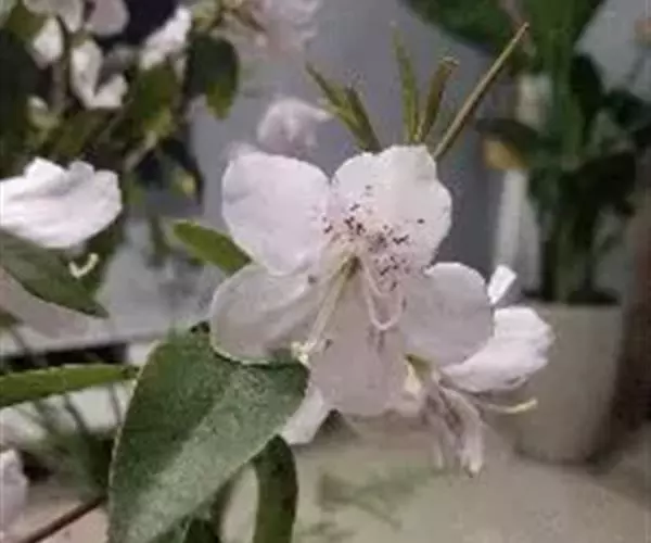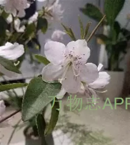 马银花 马银花是常绿灌木植物,高2-4(-6)米;小枝灰褐色,疏被具柄腺体和短柔毛。叶革质,卵形或椭圆状卵形,长3.5-5厘米,宽1.9-2.5厘米,先端急尖或钝,具短尖头,基部圆形,稀宽楔形,上面深绿色,有光泽,中脉和细脉凸出,沿中脉被短柔毛,下面仅中脉凸出,侧脉和细脉不明显,无毛;叶柄长8毫米,具狭翅,被短柔毛。花芽圆锥状,具鳞片数枚,外面的鳞片三角形,内面的鳞片长圆状倒卵形,长1厘米,宽0.8厘米,先端钝或圆形,边缘反卷,具细睫毛,外面被短柔毛。
