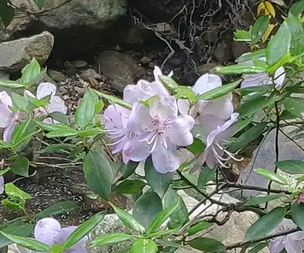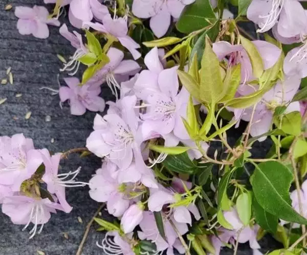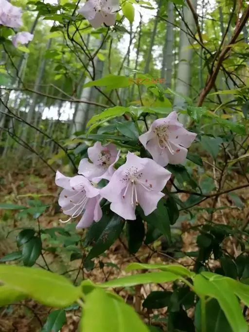 马银花(学名:Rhododendron ovatum (Lindl.) Planch. ex Maxim.):常绿灌木,高2-4米;小枝灰褐色,疏被具柄腺体和短柔毛。叶革质,卵形或椭圆状卵形,上面深绿色,有光泽,下面仅中脉凸出,侧脉和细脉不明显,无毛。花单生枝顶叶腋;花冠淡紫色、紫色或粉红色,辐状,5深裂,裂片长圆状倒卵形或阔倒卵形。蒴果阔卵球形。花期4-5月,果期7-10月。