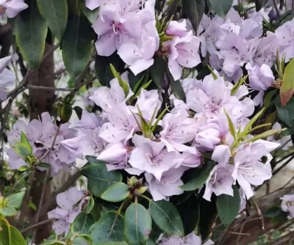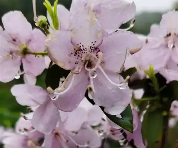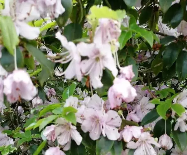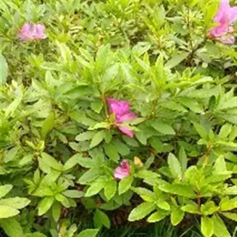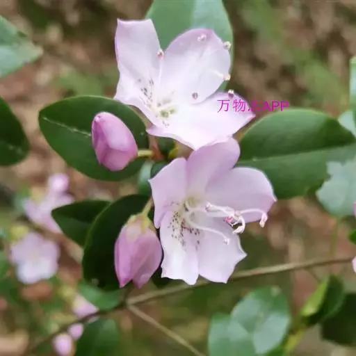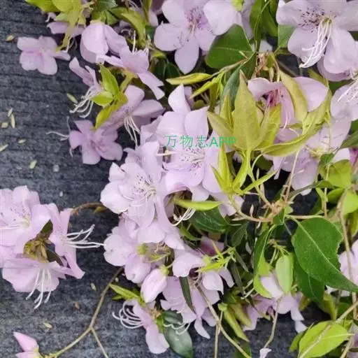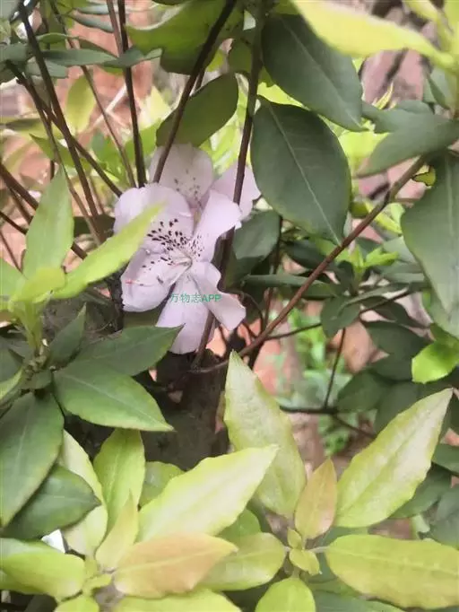 Rhododendron ovatum Plancha. var.lamprophyllum (Hayata) Liu,Lu 常绿性灌木,株高2-6米。幼枝被伏毛;叶长椭圆形至长椭圆状椭圆形,侧脉9-11对,叶表中脉被柔毛,叶柄被伏毛,具翼,丛生枝梢。枝梢叶腋萌发白色、淡粉红色至玫瑰色花,具深色斑点,花冠5裂,裂片倒卵形或倒卵状长椭圆形,雄蕊5枚,单出。