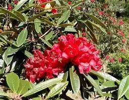 烈香杜鹃:常绿灌木,高可达2米,枝条粗壮而坚挺,叶芳香,革质,上面蓝绿色,无光泽,下面黄褐色或灰褐…