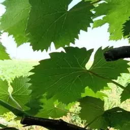 庐山葡萄 庐山葡萄,木质藤本植物。在开扩地常呈披散状灌木。小枝圆柱形,有纵棱纹,密被短柔毛和疏被蛛丝状绒毛。卷须不分枝或混生有2分枝,每隔2节间断与叶对生,常因发育不良早萎缩。叶卵圆形或卵椭圆形,长3-5.5厘米,宽2-4厘米,顶端急尖或渐尖,基部心形,基缺凹成钝角,边缘每侧有尖锐锯齿,上面暗绿色,密被短柔毛及稀疏蛛丝状绒毛,下面密被灰色蛛丝状绒毛。 庐山葡萄基生脉5出,中脉有侧脉4-5对,脉上密被短柔毛和疏生蛛丝状绒毛,上面明显或微下陷,网脉在上面不明显,在下面拨开绒毛可见脉上密生短柔毛;叶柄长0.5-1厘米,密被短柔毛和蛛状丝绒毛;托叶卵椭圆形,长2-3毫米,宽1.5-2毫米,顶端钝,边缘全缘,几无毛。