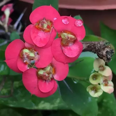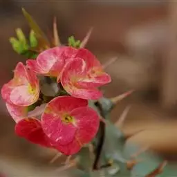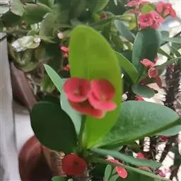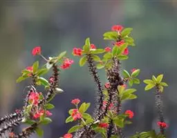 虎刺梅:别称铁海棠,是蔓生灌木植物。茎多分枝,长60-100厘米,直径5-10毫米,具纵棱,密生硬…