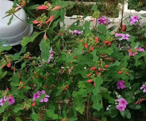猩猩草种子成熟时易曝裂,需及时采种。盆土通常用园土加腐叶土和堆肥土,一般调制比例为园土2份,腐叶土1份,堆肥土1份。幼苗具2-3片真叶时间苗1次,6月苗高15厘米左右时定植或盆栽。经3-4周生长后即可进行摘心,从基部往上数,留4-5片叶子,把枝端剪去,使其发出3-4个侧枝,形成一盆具有3-5个花头的植株。
