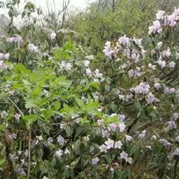 密枝杜鹃:常绿灌木,高0.8-1米,分枝稠密,常成垫状或平卧。幼枝短,带红褐色,被暗褐色鳞片。叶芽…