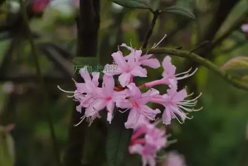 弯蒴杜鹃:常绿灌木,高可达5米。枝细长,灰褐色,叶革质,常集生枝顶,近于轮生,叶柄被刚毛或腺头刚毛…