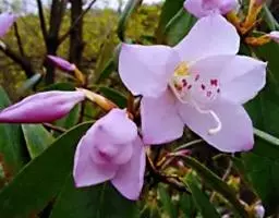 大白杜鹃是杜鹃花科杜鹃花属的常绿灌木,高可达5米。幼枝绿色,无毛;叶厚革质,长圆形或圆状倒卵形,…