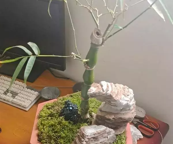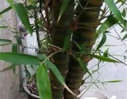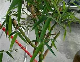 佛肚竹(学名:Bambusa ventricosa McClure):为禾本科丛生型竹类植物。幼秆深绿色,稍被白粉,老时转榄黄色。秆二型:正常圆筒形,高7-10米,节间30-35厘米;畸形秆通常25-50厘米,节间较正常短。箨叶卵状披针形;箨鞘无毛;箨耳发达,圆形或卵形至镰刀形;箨舌极短。