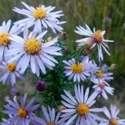 头状花序单生于分枝顶端且排成伞房状,直径2-3.5厘米。总苞半球形,径10-14毫米;总苞片3层,覆瓦状排列,上部绿色,无毛,外层较短,长椭圆形,顶端微尖,内层倒披针状长椭圆形,长5-6毫米,宽2-3毫米,顶端钝,边缘有膜质繸状边缘。舌状花淡蓝色,长约1.5-2厘米,宽2-3毫米,管部长约1.8毫米;管状花黄色,长约4毫米,管部长约1.3毫米。瘦果倒卵形,长3(4)毫米,宽约2毫米,扁平,淡褐色,疏生短柔毛,有浅色边肋或偶有3肋而果呈三棱形。冠毛淡红色,长0.5-1毫米。