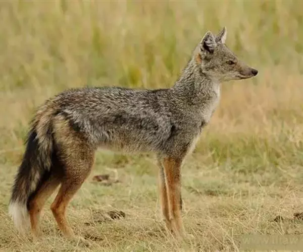亚洲胡狼(学名:Canis aureus aureus):是金豺的指名亚种,体型中等、匀称,四肢修长,趾行性,利于快速奔跑。头腭尖形,颜面部长,鼻端突出,耳尖且直立,嗅觉灵敏,听觉发达。犬齿及裂齿发达;上臼齿具明显齿尖,下臼齿内侧具一小齿尖及后跟尖;臼齿齿冠直径大于外侧门齿高度。毛粗而长。前足4~5趾,后足一般4趾 ;爪粗而钝,尾多毛。