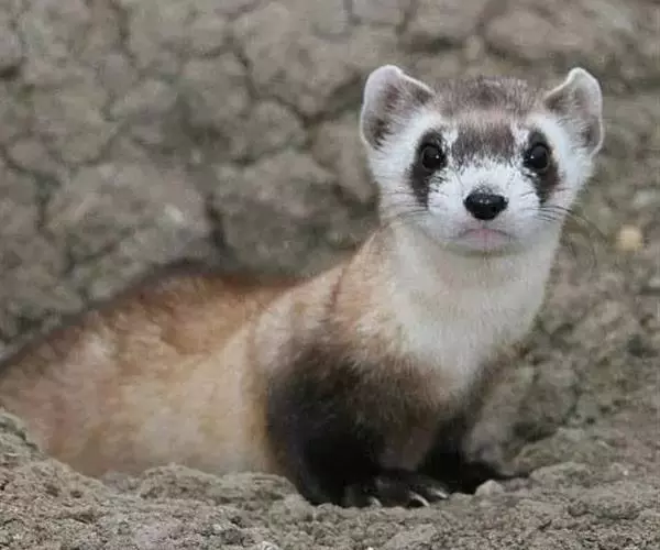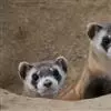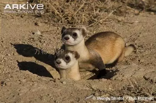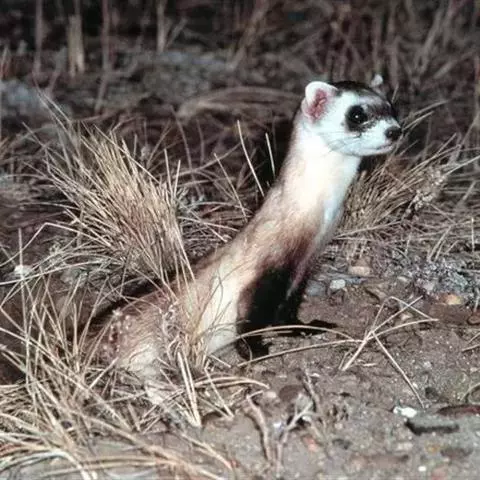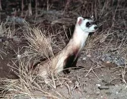 黑足鼬(学名:Mustela nigripes):是一种原产于北美洲的小型食肉性哺乳动物和唯一原产于北美地区的鼬类。体长31-41厘米,尾长11-15厘米,体重0.8-1千克。雄性略大,上体皮毛是黄色,下体灰白色,有着深色的尾巴以及黑色的尾巴尖,嘴部、脸部、喉咙、前额部分呈白色,黑白过渡色为黄褐色,眼睛周围有一个黑色的面具,鼻尖黑色,腿很短,有强壮的前肢和较大的前爪,利于挖掘。