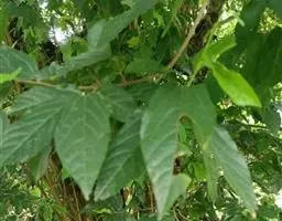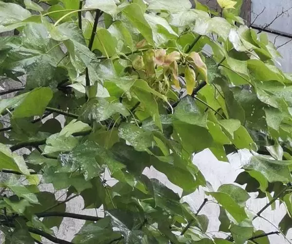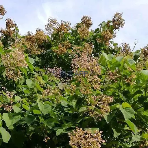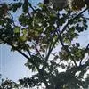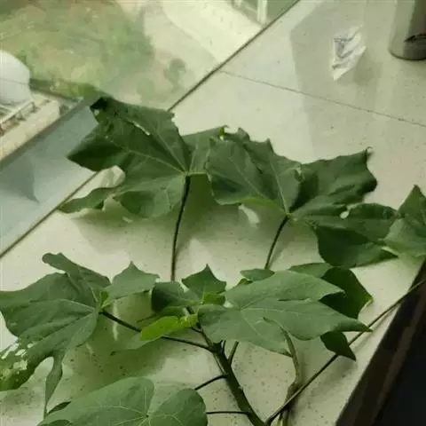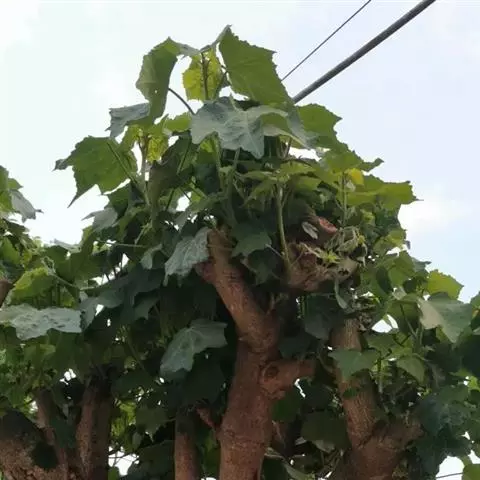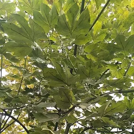 中国梧桐叶图4 梧桐树常用播种法繁殖,扦插、分根也可。秋季果熟时采收,晒干脱粒后当年秋播,也可沙藏至翌年春播。条播行距25厘米,覆土厚约1.5厘米。每亩播量约15公斤。沙藏种子发芽较整齐,播后4至5周发芽。干藏种子常发芽不齐,可在播前先用温水浸种催芽。正常管理下,当年生苗高可达50厘米以上,翌年分栽培养。三年生苗即可出圃。栽植地点宜选地势高燥处,穴内施入基肥,定干后,用蜡封好锯口。注意梧桐木虱、霜天蛾、刺蛾等虫害,可用石油乳剂、敌敌畏、乐果、甲胺磷等防治。在北方,冬季对幼树要包扎稻草绳防寒。入冬和早春各施肥一次。