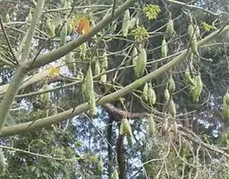 使叶面呈现苍白萎缩症状,起风时,白色蜡丝随风飘扬,形如飞雾,絮状飘落,人不小心碰到会有黏糊糊的感觉,还有一股臭味,且很难清洗。严重污染周围环境,影响市容市貌。