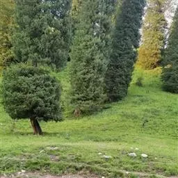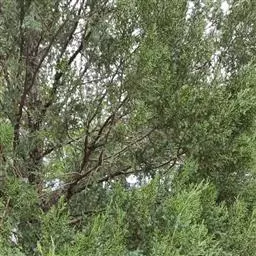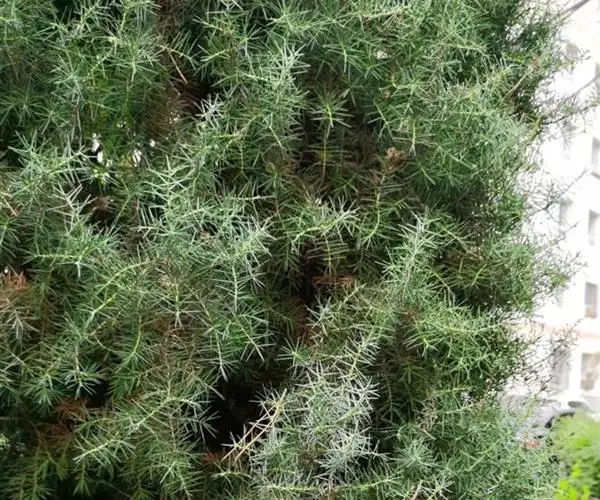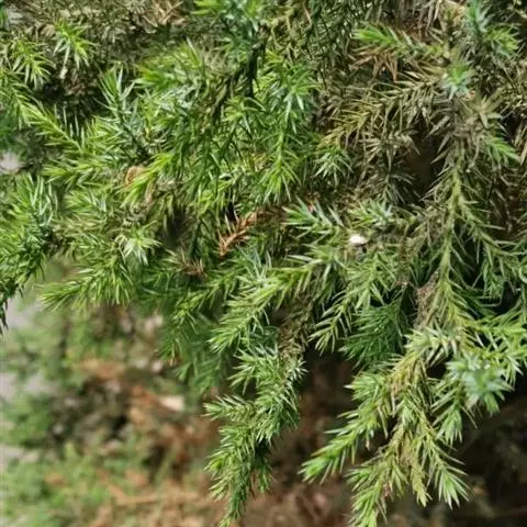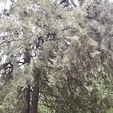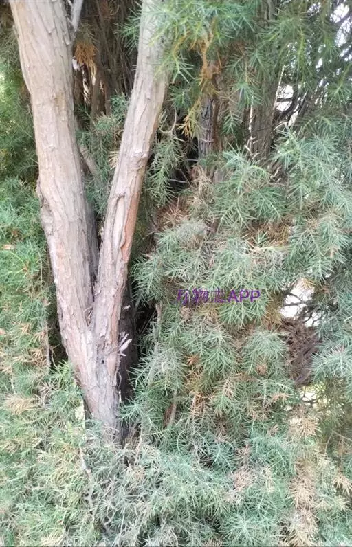 杜松 灌木或小乔木,高达10米;枝条直展,形成塔形或圆柱形的树冠,枝皮褐灰色,纵裂;小枝下垂,幼枝三棱形,无毛。